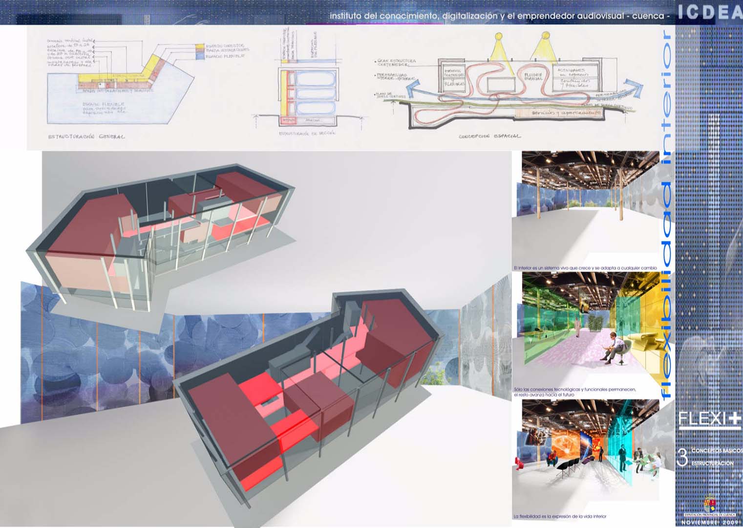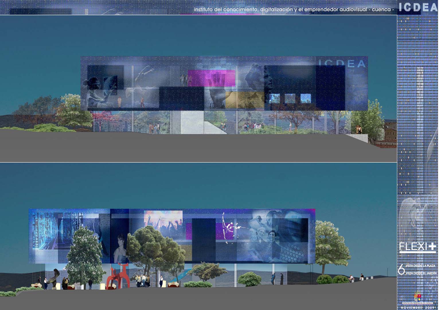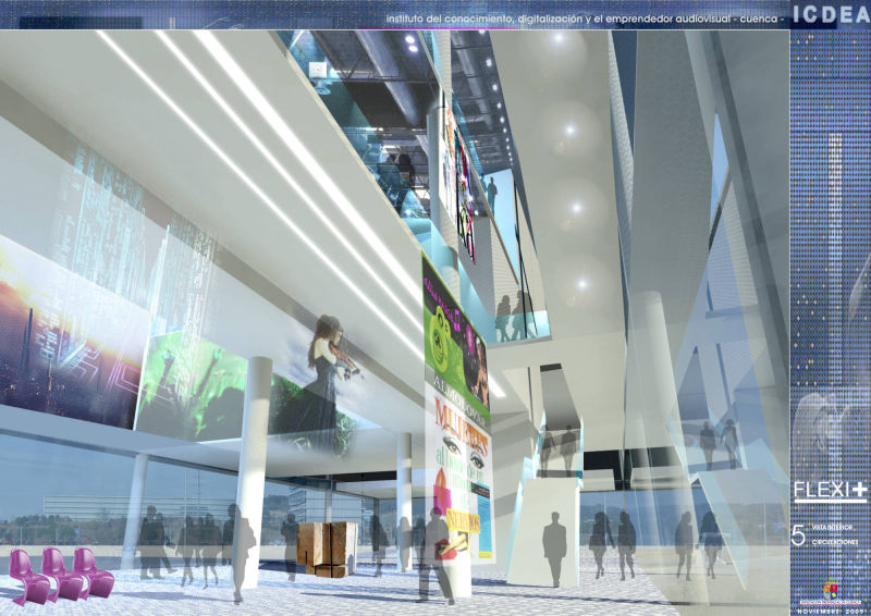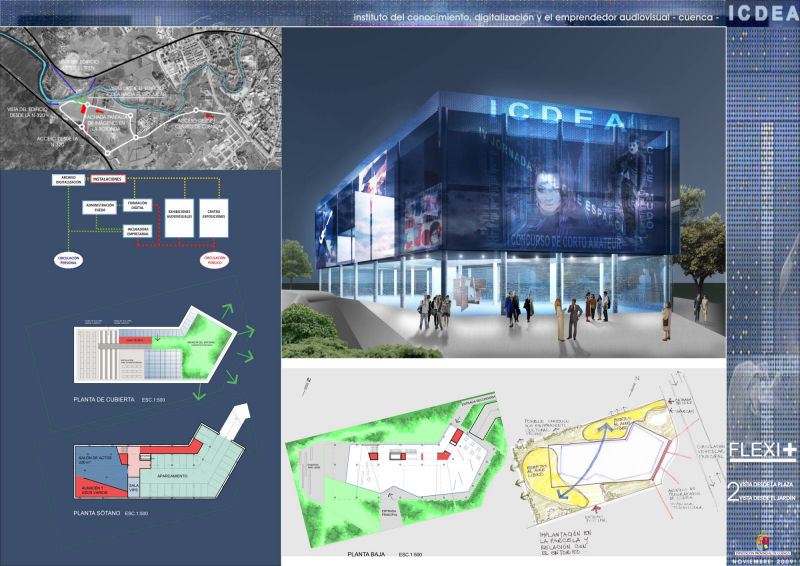 This proposal for the building destined for the Institute of Knowledge, Digitalisation and Audiovisual Entrepreneurship (ICDEA), in Cuenca, is conditioned by the technical, constructive and economic possibilities of the present, but it is committed to the future through systems that leave its transformation open.