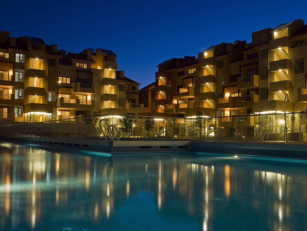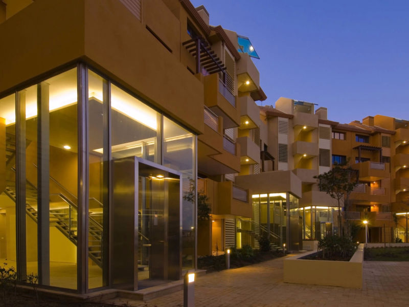 The resort makes up one of the margins of the Sotogrande Marina, and succeeds in making the dual commercial and residential programmes complementary. The housing participates in the commercial life of the promenade, but with the intimacy and comfort lent by setting back the buildings behind protective gardens. The pedestrian promenade is formed integrating the bustle of the shop fronts with the nautical activity of the mooring quays, and has the benefit of spatial extent provided by the gardens of the flats, over the roofs of the commercial premises. Clear functional separation between vehicle access, parking areas and storage zones in each programme optimizes their interrelation.