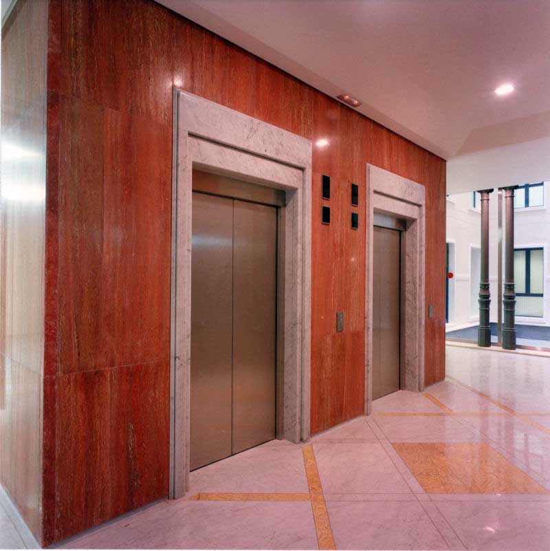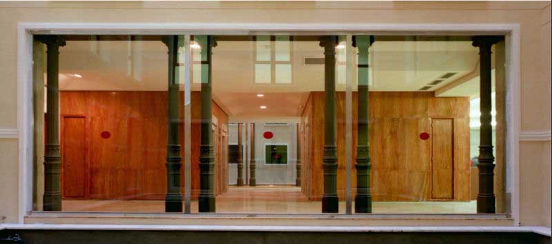 Destacan la minuciosidad de ejecución de los detalles constructivos y los acabados de los revestimientos interiores. La reutilización de ocho esbeltas columnas de hierro fundido halladas en el edificio apela a “la memoria del lugar”.