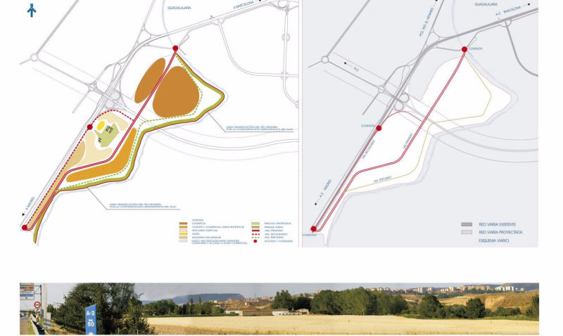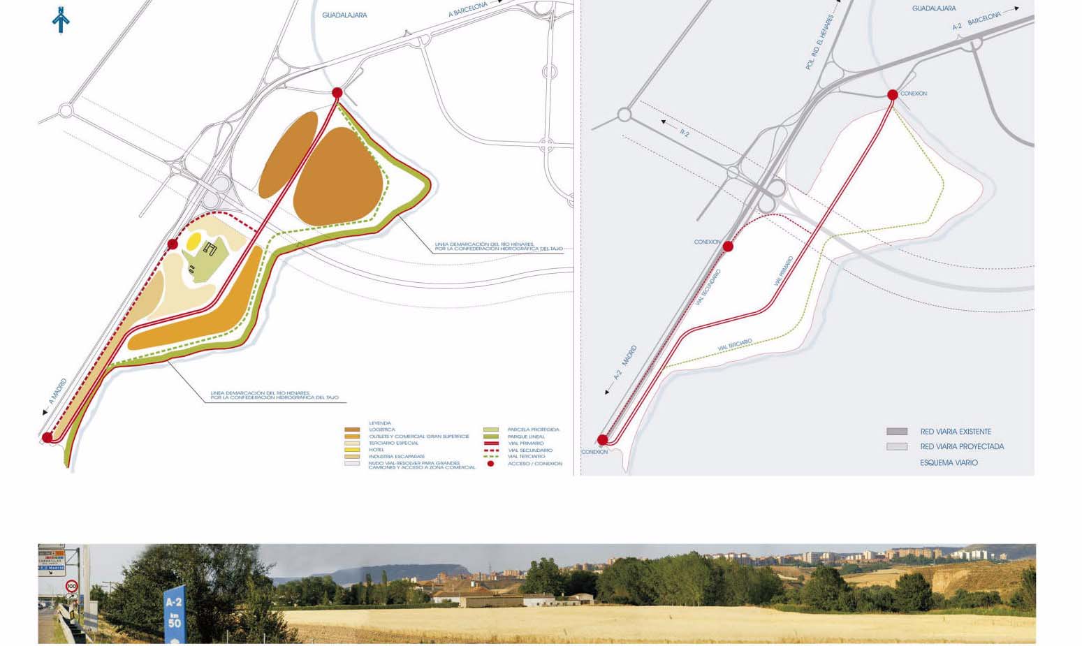 Estudio para un parque tecnológico en Guadalajara cercano al Corredor del Henares. Con una superficie próxima a las cien hectáreas se pretendía aprovechar la excelente visibilidad y el acceso directo desde la A2, las excelentes comunicaciones y la proximidad de amplias zonas residenciales y núcleos de población para crear un parque tecnológico multifuncional que aunase industrias y oficinas de alto nivel tecnológico y bajo impacto ambiental, viviendas de baja y media densidad, servicios de ocio específico y un hotel. Mediante el uso de la vegetación y distintos juegos con agua se creaba un gran parque lineal en los márgenes de río Henares.