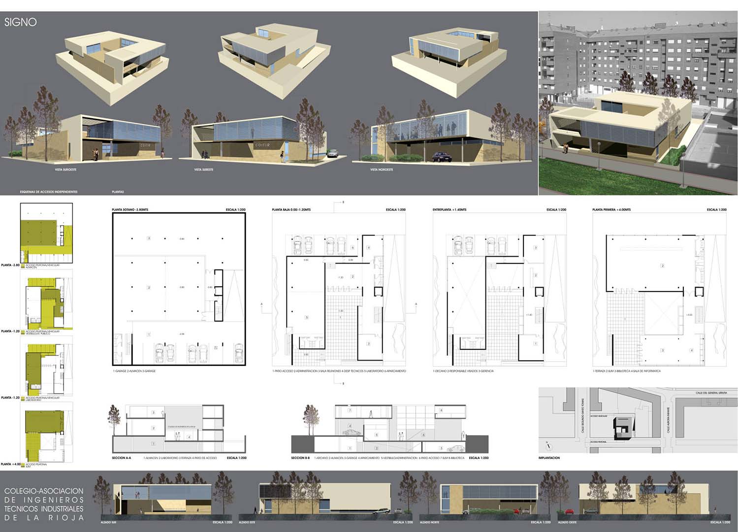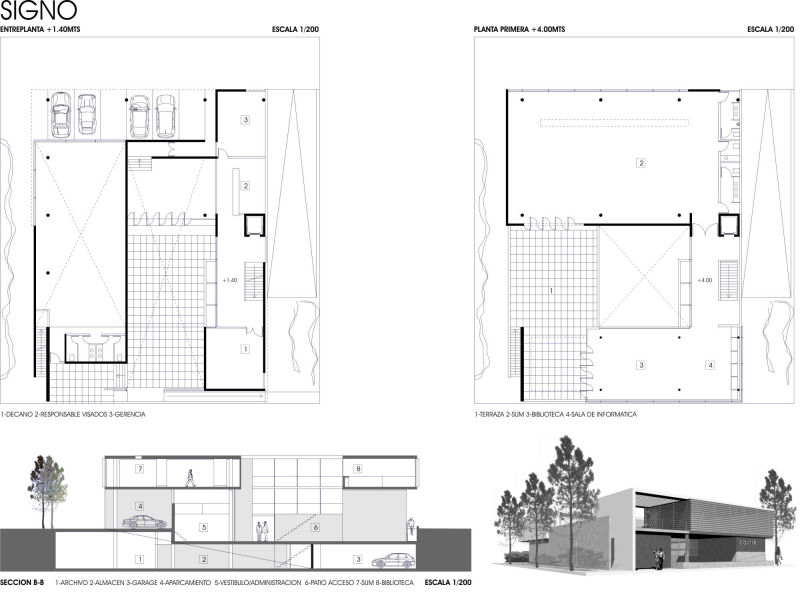 El edificio está concebido como una estructura arquitectónica racional que permite tanto una flexibilidad espacial como una lógica en el armado funcional. La incorporación del patio de acceso permite generar un nuevo paisaje que se diferencie del entorno existente, este acceso se va dando de forma gradual mediante un espacio semi-cubierto que hace las veces de portal de ingreso, genera una adecuada imagen institucional y le da jerarquía.