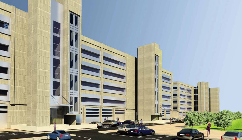 La construcción de todos los elementos estructurales, fachadas y cubiertas se resolvió con prefabricados de hormigón, combinando diversas texturas que, junto a un sistema de colores, facilitaban la legibilidad de los accesos y la accesibilidad a cada módulo.