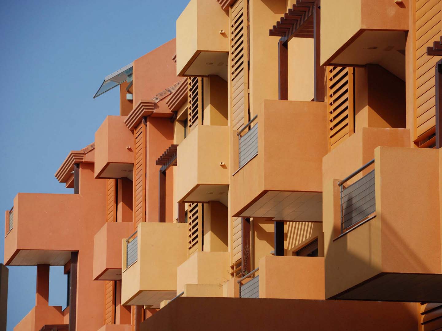 Los bloques de viviendas configuran este espacio abierto, disponiéndose hacia las mejores orientaciones solares y visuales. En sus volúmenes destaca el juego de luces y sombras producido por los extremos voladizos de sus terrazas, que prolongan hacia el mar el espacio interior de las viviendas. Todas las viviendas tienen doble orientación para fomentar la ventilación cruzada natural, que minimiza la necesidad de consumo energético en refrigeración.