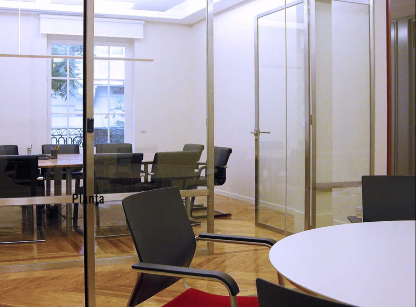 Implantación de oficina en Madrid para el grupo Hines en un edificio histórico. La escasez y modulación de los huecos de fachada, típicos de un edificio antiguo con fachada de muro de carga, marcó la actuación en la que, a falta de luz natural y vistas, se potenció la conexión visual de las distintas áreas de trabajo con el exterior. Se rescató el suelo de madera y las molduras originales y se jugó recurrentemente con tres colores, rojo corporativo, blanco y brillo metálico de los elementos de acero inoxidable, para transmitir la imagen activa y moderna del grupo.
