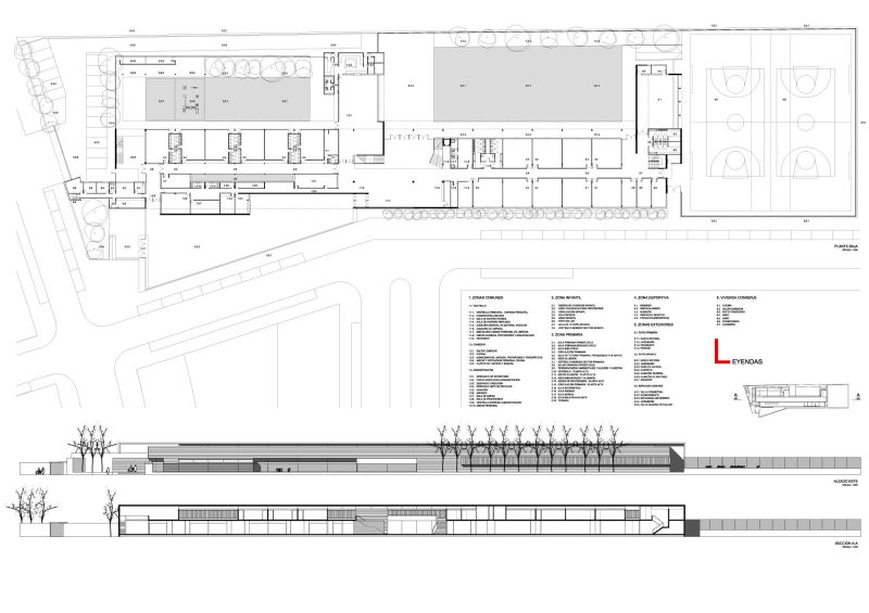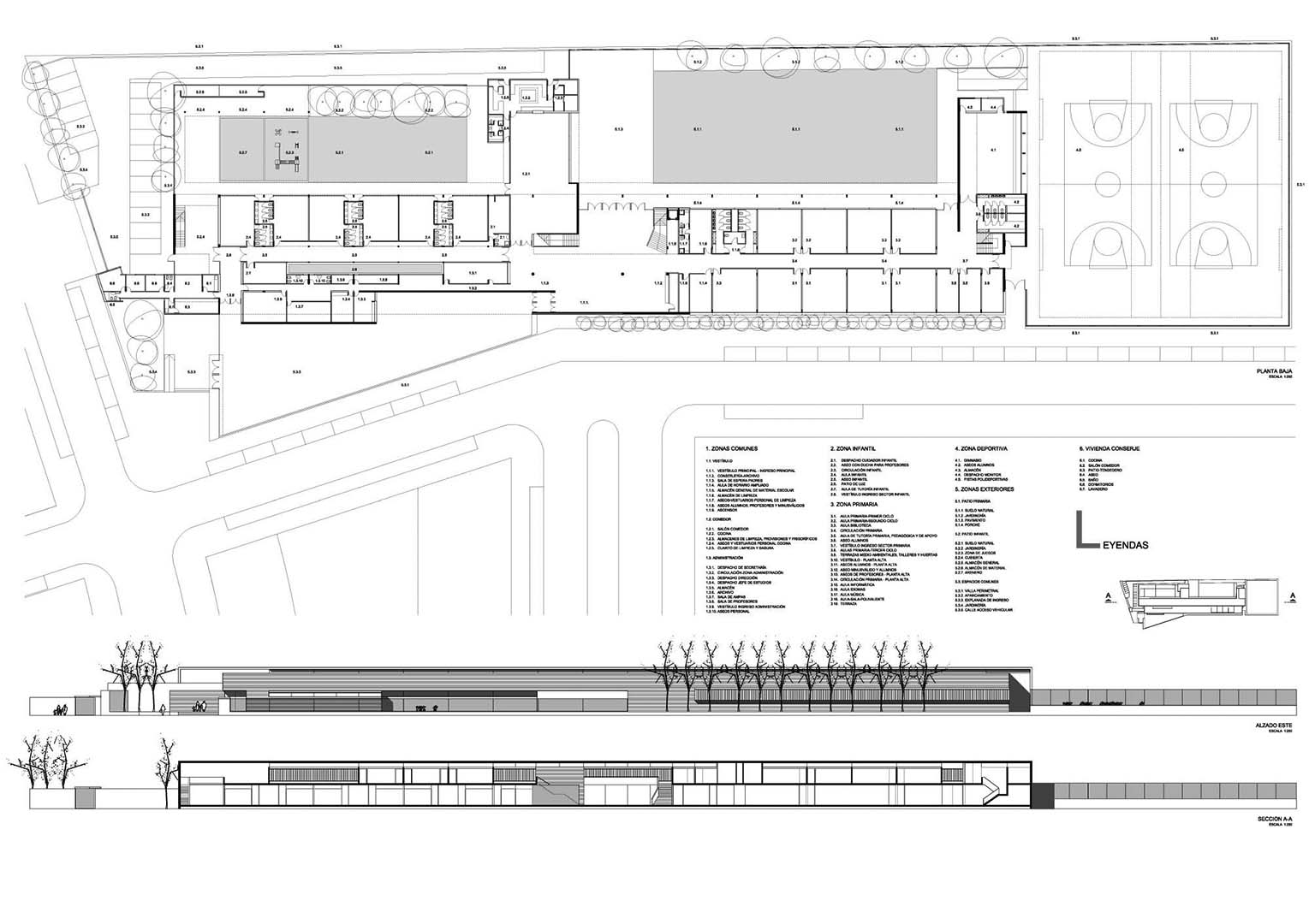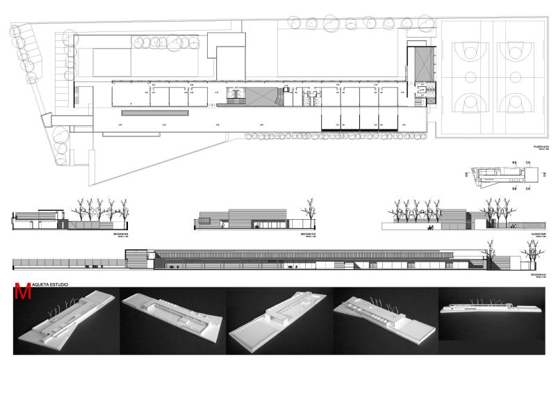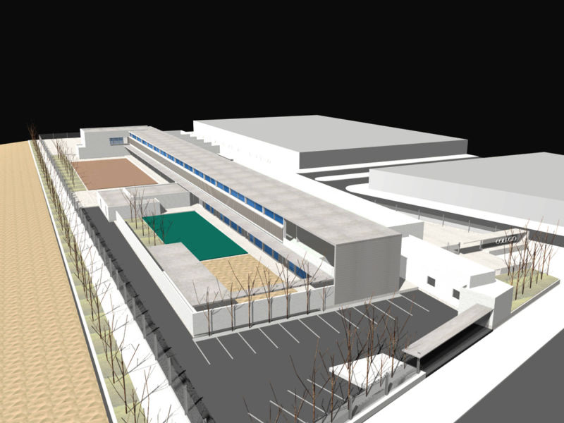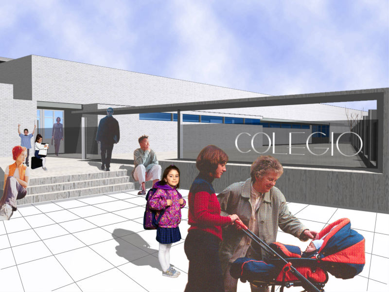 El edificio está compuesto por una volumetría simple y pura, longitudinal al lado más largo del terreno y en dos plantas. El vestíbulo de acceso es el corazón del proyecto, donde se concentran las actividades comunes de todo el centro educativo. Su ubicación estratégica en la planta, permite dividir funcionalmente las actividades de la escuela primaria con la de infantiles y conecta a ambos con la administración y el comedor.