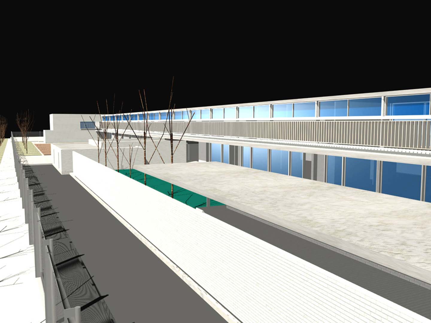 El trabajo volumétrico de clara estructura arquitectónica, incorpora tanto la continuidad como los límites espaciales, según sea necesario, e incorpora además los espacios semicubiertos como lugares intermedios entre el exterior y el interior de gran importancia a nuestro entender para el buen funcionamiento del edificio.