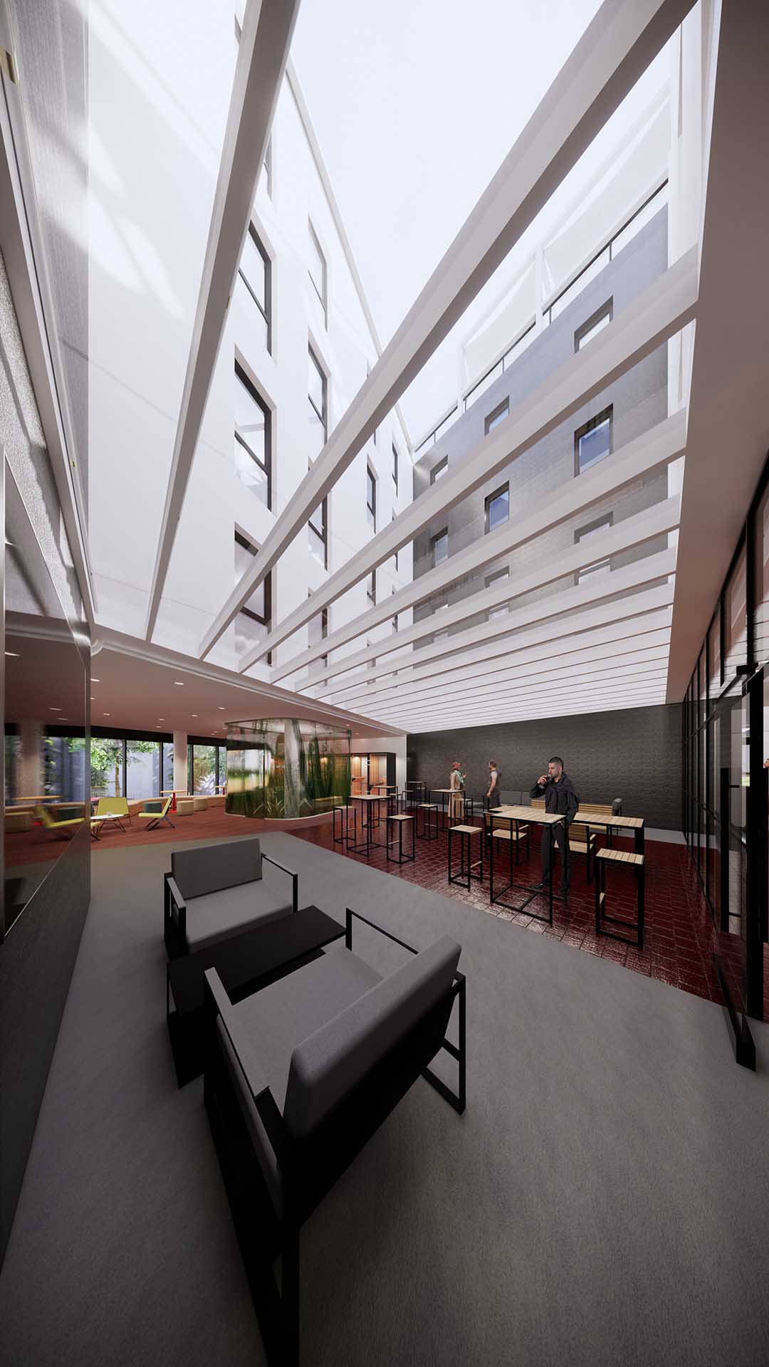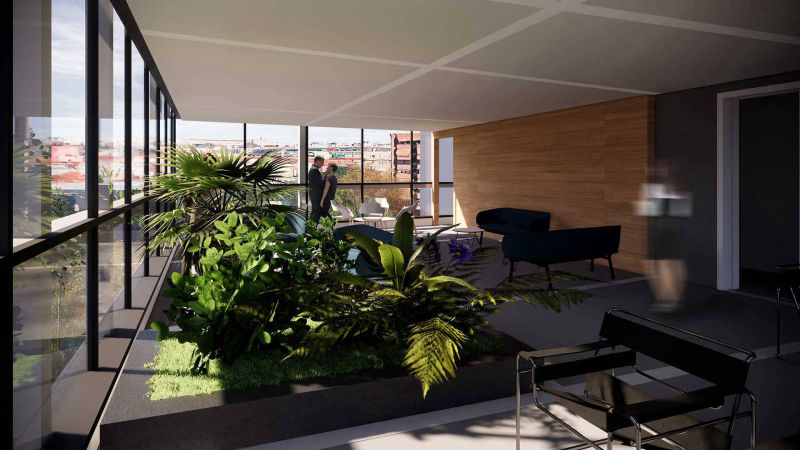 El proyecto tiene por objeto albergar un espacio de co-living en el que se pueden alquilar estudios, viviendas de uno o dos dormitorios, con superficies que varían entre 40 y 75 m², así como una amplia oferta de espacios de uso común.