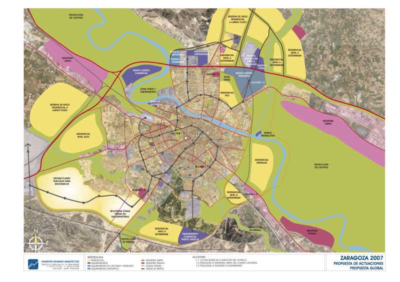 - Dotar a Zaragoza de las infraestructuras, transportes, equipamientos, dotaciones, organización, medios y normas que permitan su desarrollo y el surgimiento de la nueva imagen que necesita, potenciando simultáneamente el incremento de la calidad en sus espacios urbanos y edificaciones.